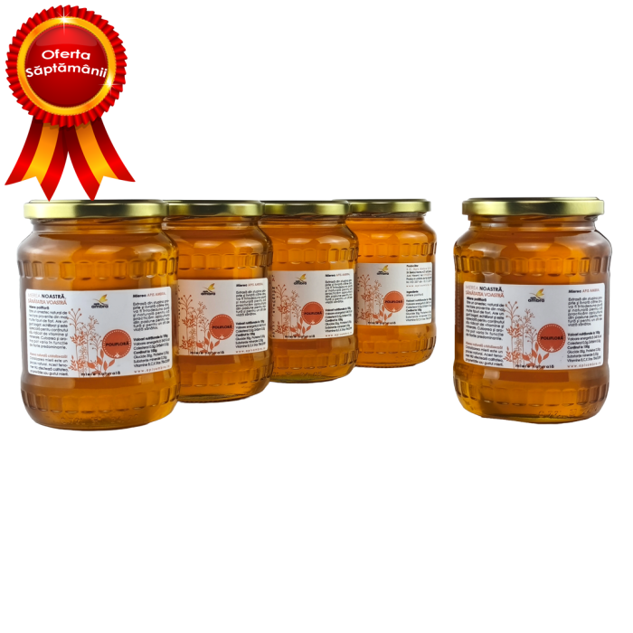 Alege mierea polifloră, un produs 100% natural, plin de arome diverse și bogat în vitamine, minerale și antioxidanți. Cunoscută pentru efectele sale benefice asupra sănătății, mierea polifloră întărește imunitatea, susține digestia și oferă energie naturală. Obținută din nectarul mai multor flori, acest tip de miere este perfect echilibrat, fiind ideal atât pentru consumul zilnic, cât și pentru diverse rețete. Descoperă gustul autentic al mierii poliflore și adaugă un strop de sănătate în alimentația ta!