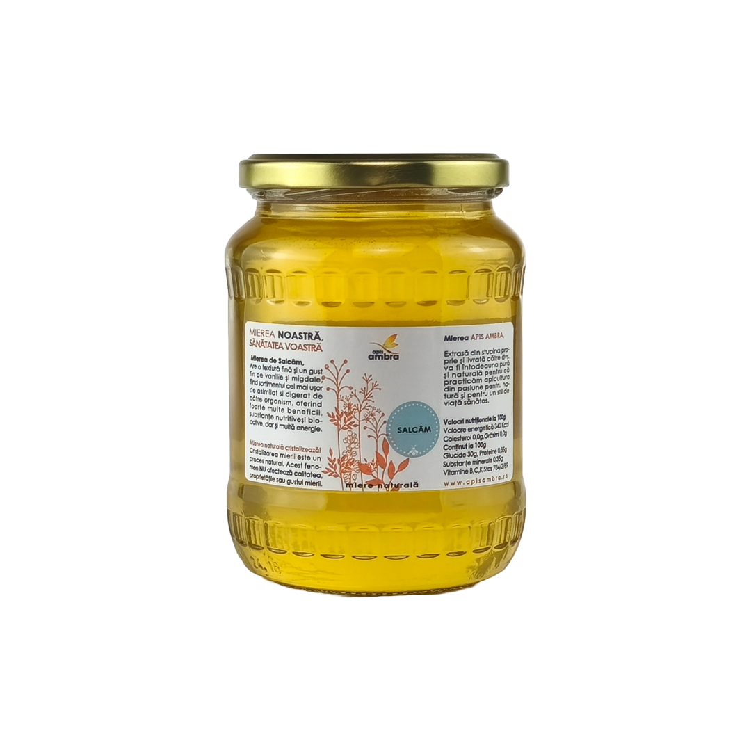 Mierea de salcâm este un produs apicol pur, cu un gust fin și delicat, apreciată pentru culoarea sa deschisă și consistența fluidă. Datorită conținutului ridicat de fructoză, se păstrează lichidă mai mult timp, fiind o alegere perfectă pentru îndulcirea naturală a băuturilor sau preparatelor culinare.